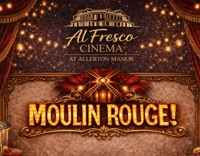Experience Moulin Rouge! like never before with our 5D Eat-A-Long Al Fresco Cinema — a sunset dining and cinema spectacular set within the stunning gardens of Allerton Manor Golf Course.